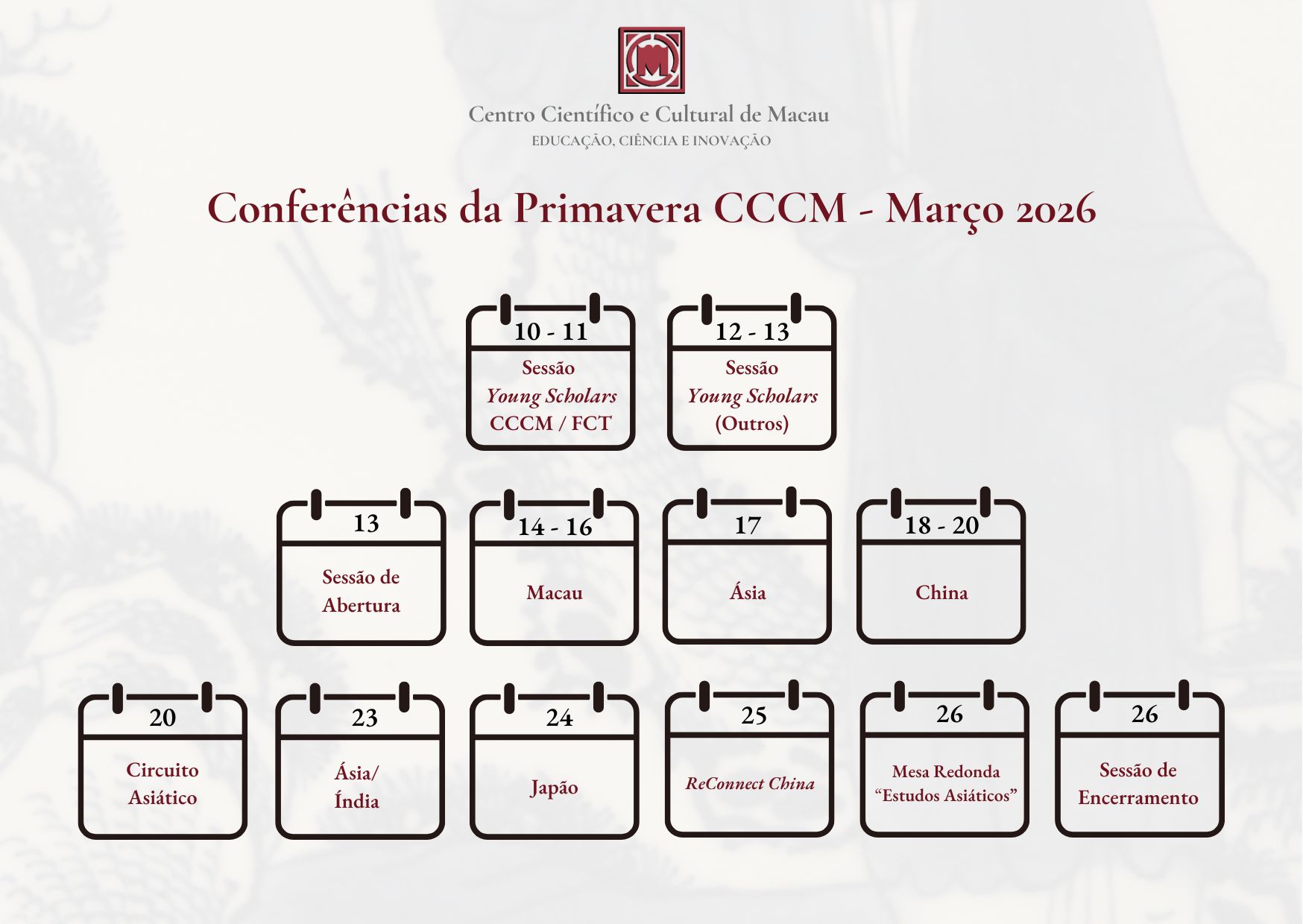 The Spring Conferences provide a space for interdisciplinary reflection and debate, bringing together experts and researchers around topics relevant to understanding contemporary cultural dynamics, with a particular focus on the Lusophone world and its connections with Macau.